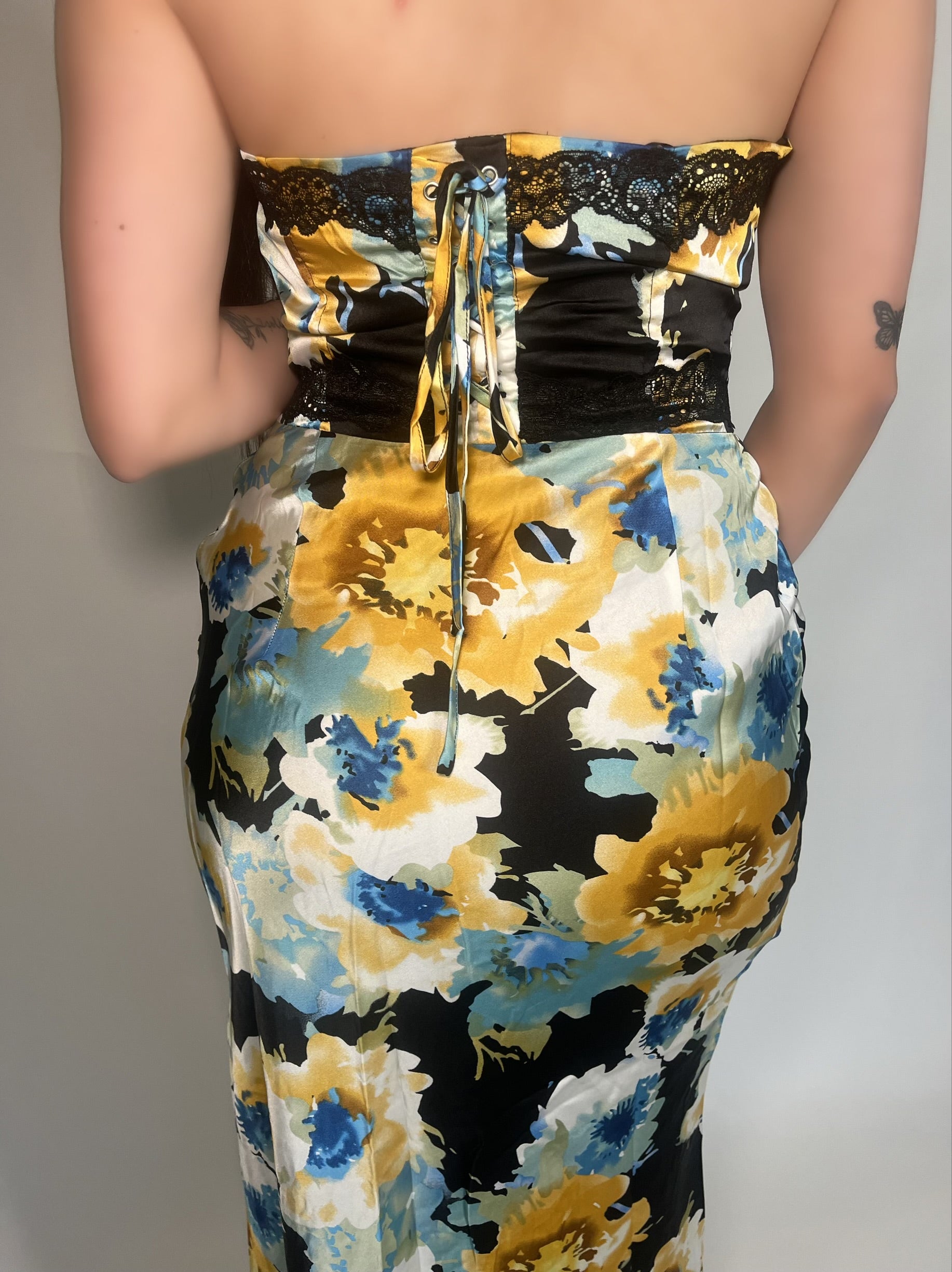 FLORAL LONG DRESS WITH LACE TRIM DETAILS