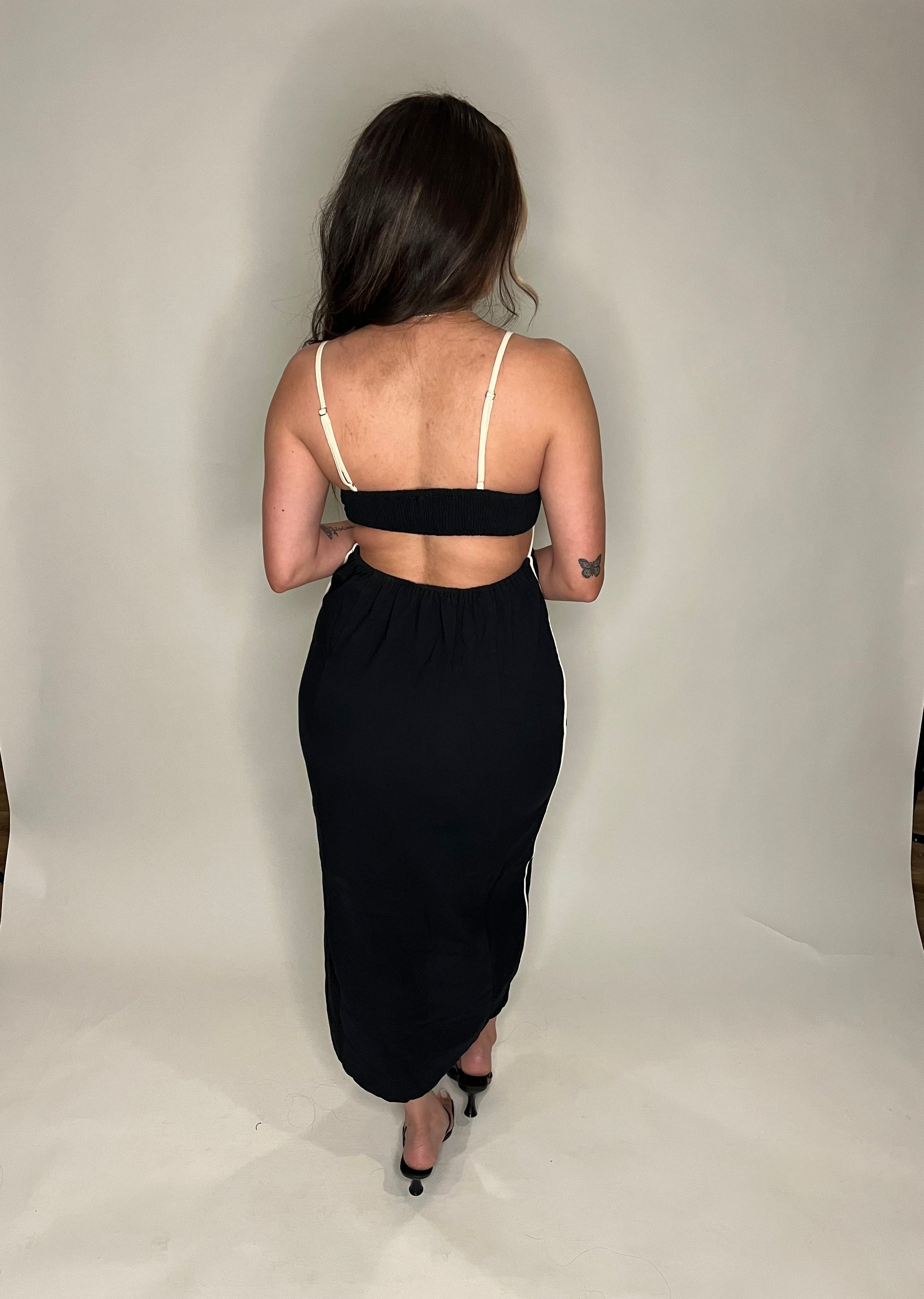 CONTRAST MIDI DRESS WITH RIBBON DETAIL